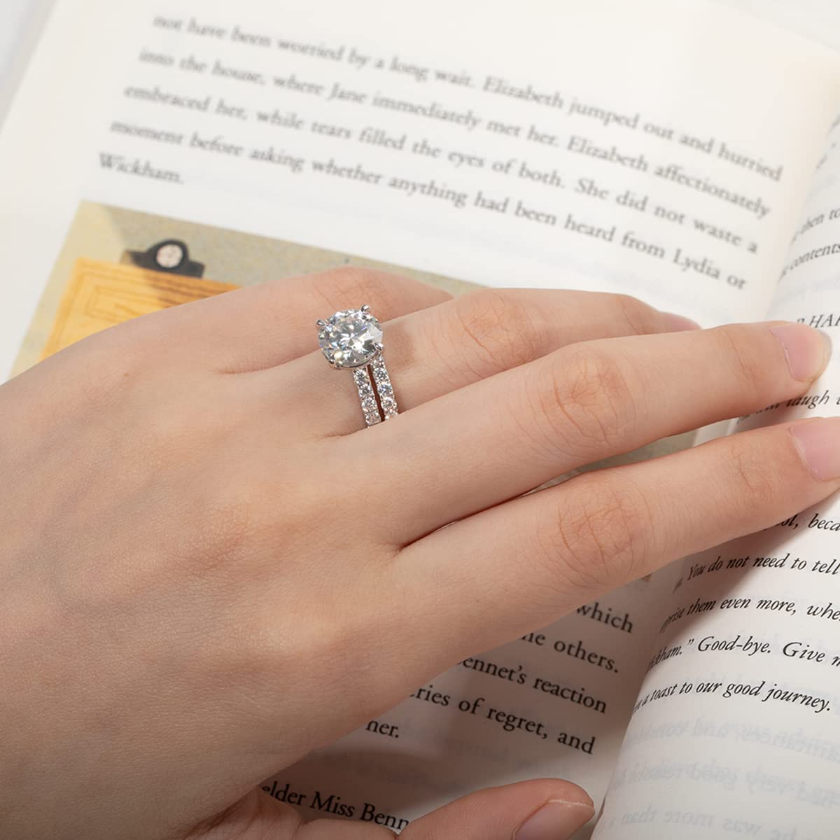 CLASSIC DESIGN: Classic minimalist eternity design, 4ct D color center moissanite engagement Ring and 1.22ct moissanite wedding band , excellent eight hearts and arrows, round brilliant cut is the best shape to reflect lights in and out. Timeless classical in beauty boost any casual or elegant formal attire, making you focus of the feast, banquet, meeting, dating, prom, party, travel, just feel confident to wear it, be ready for receive many compliments from your friends.