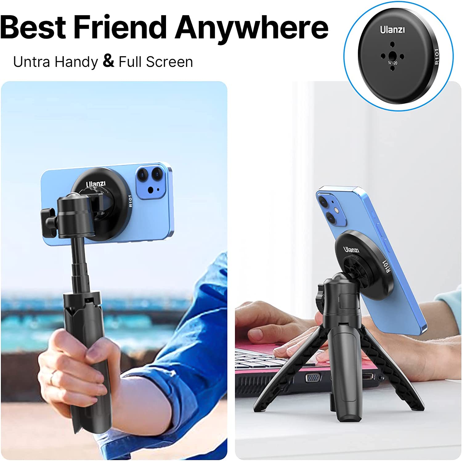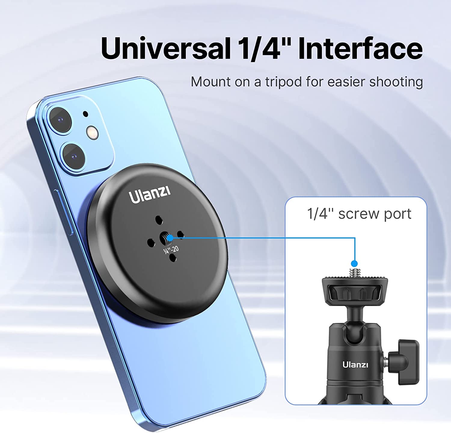 ULANZI R101 1/4" Mount for MagSafe Lightweight and Compact, Magnetic Tripod Adapter Only for iPhone13/12 Pro/Pro Max/Mini, Magsafe Case/Cover, Tripod, Selfie Stick, Live Broadcast Tripod