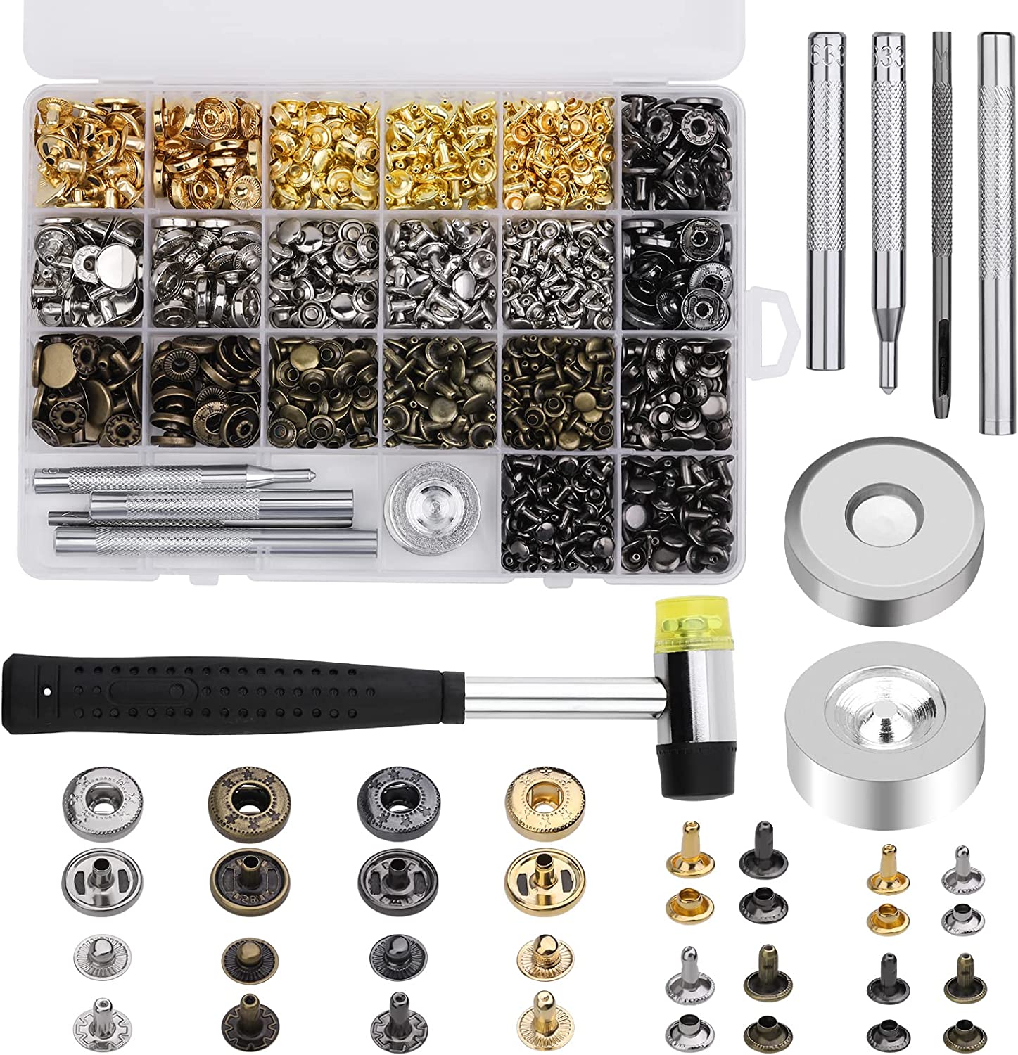★Rich Combination Kit: You will get 60 pcs of 4 different colors of leather snap buttons and 320 pcs of 2 sizes of leather rivets all at once. It is also equipped with a double-sided nylon hammer, 5pcs fixing tools, such as leather anti-slip punch, rivet stick, round head snap button, to further help you easily complete leather DIY projects.