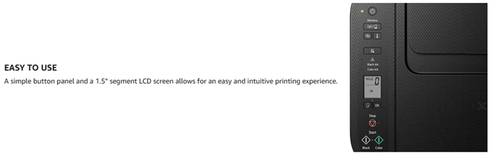 • 1.5" SEGMENT LCD SCREEN - Use the intuitive 1.5" segment LCD screen with straight-forward buttons for printing, copying, and scanning directly from the printer to allow you to have an easy and intuitive printing experience.