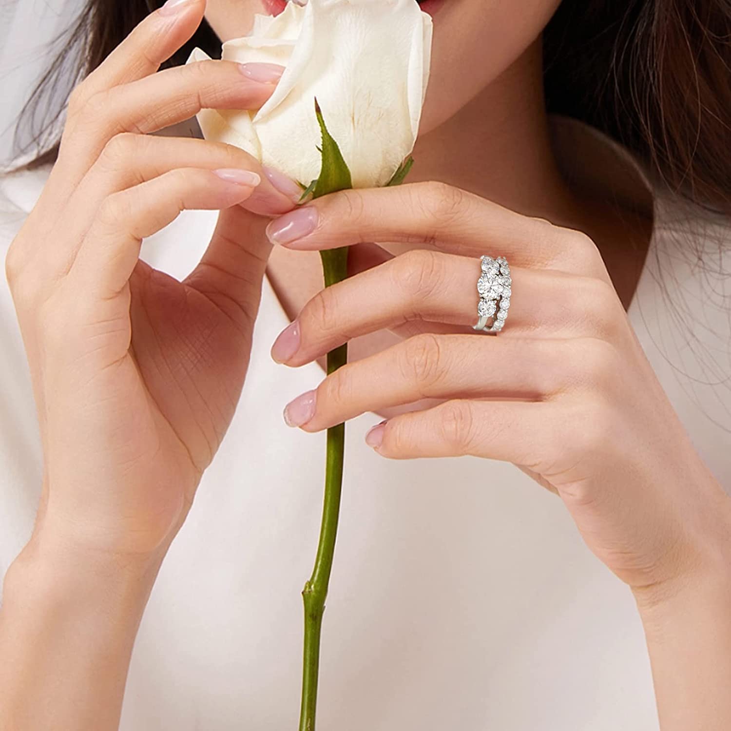 • ?【3 STONES DESIGN】- This moissanite angagement ring for women is made with 1pcs of 7MM stone and 2pcs of 5MM stones. Some believe that the three stones represent the mother, father and child, and make together to symbolize happiness, love and loyalty, which with a classic style, very layered and looks more gorgeous and elegant than a solitaire ring.