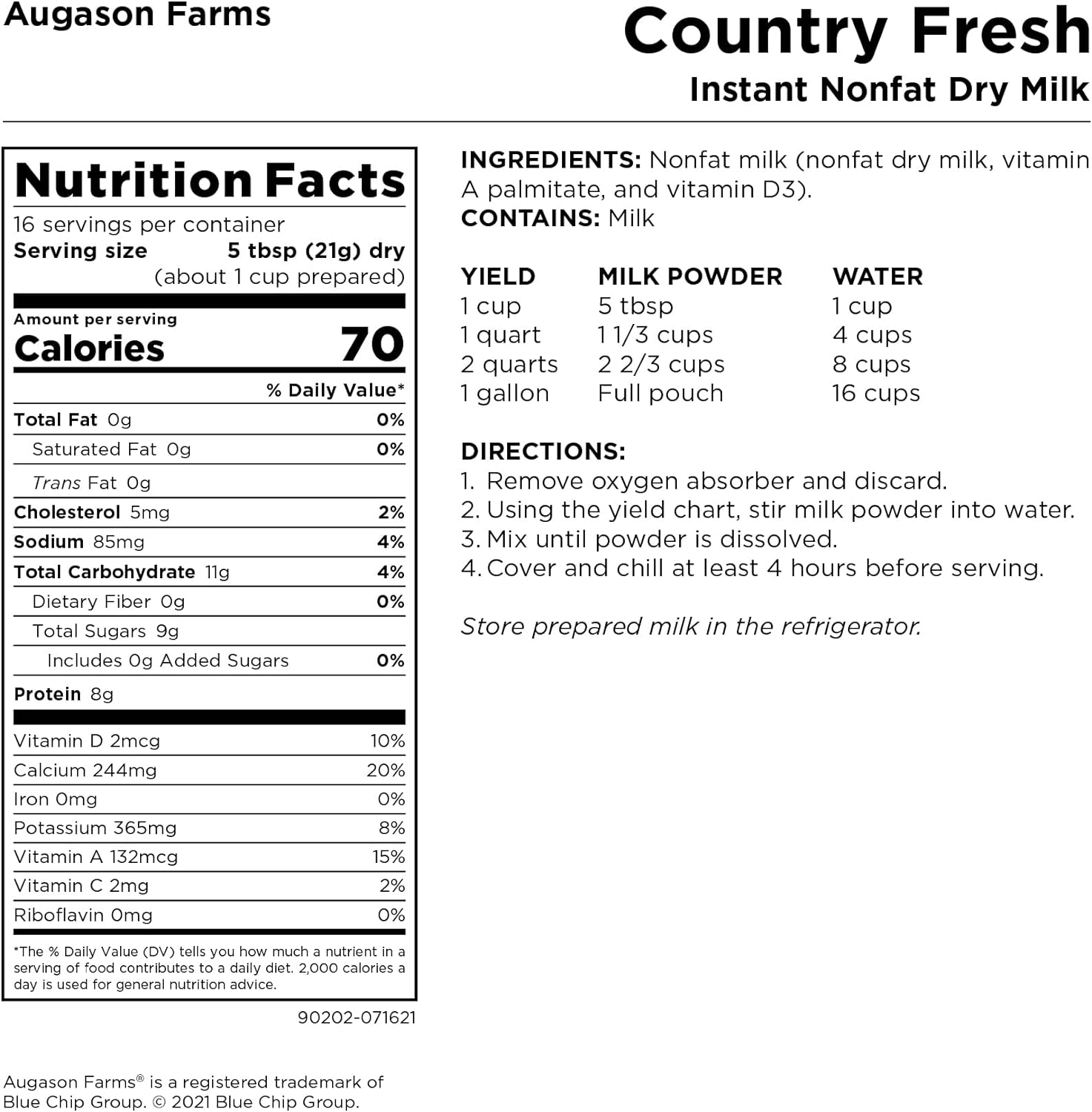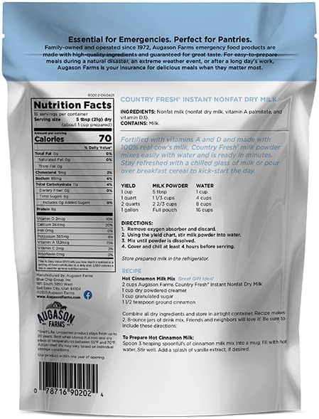 Augason Farms Country Fresh? 100% Real Instant Nonfat Dry Milk Powder Resealable Pouch 11.8 oz.