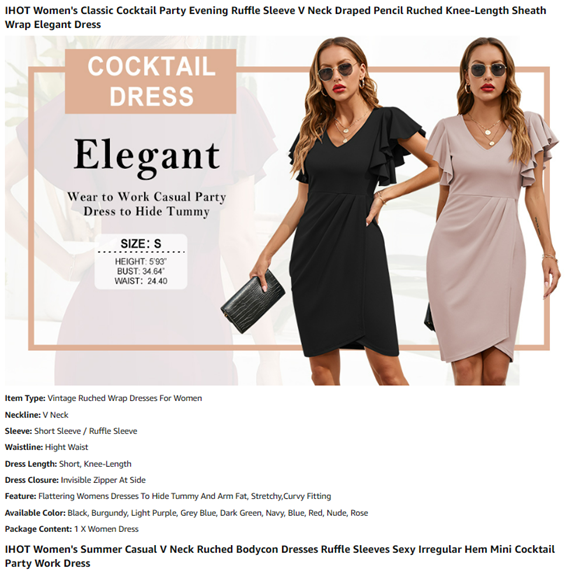 Classic Sheath Cocktail Dresses Style, Super Flattering, Sleeves with Ruffle Design Covers Your Arms Look More Slimmer, Ruched Wrap Around the Waist can Hide Tummy Perfectly, the Cross Hem Highlights Your Sexy Legs.