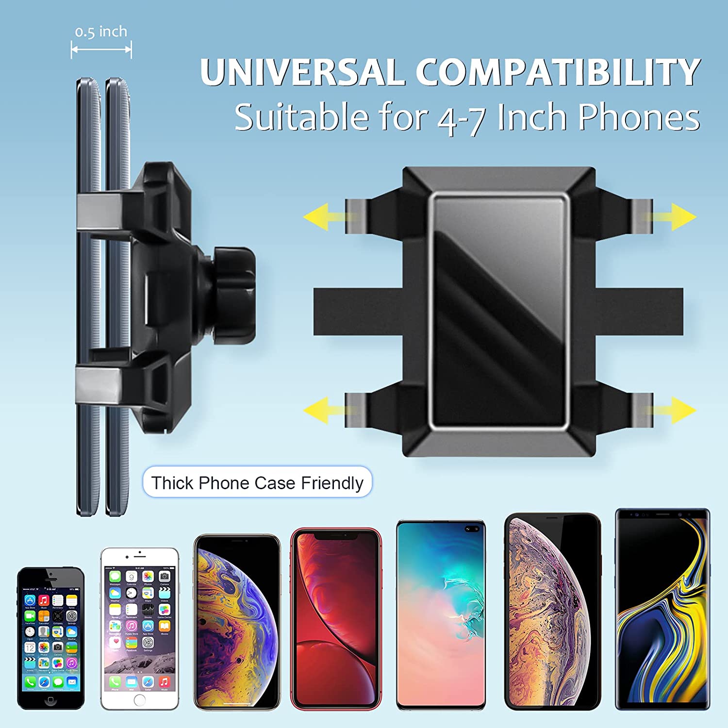 COMPATIBILITY TIP: Please check whether it conforms to your rearview mirror size before purchasing. The phone holder can be adjusted according to the width of the phone and is compatible with any 4-7 inch phone.
