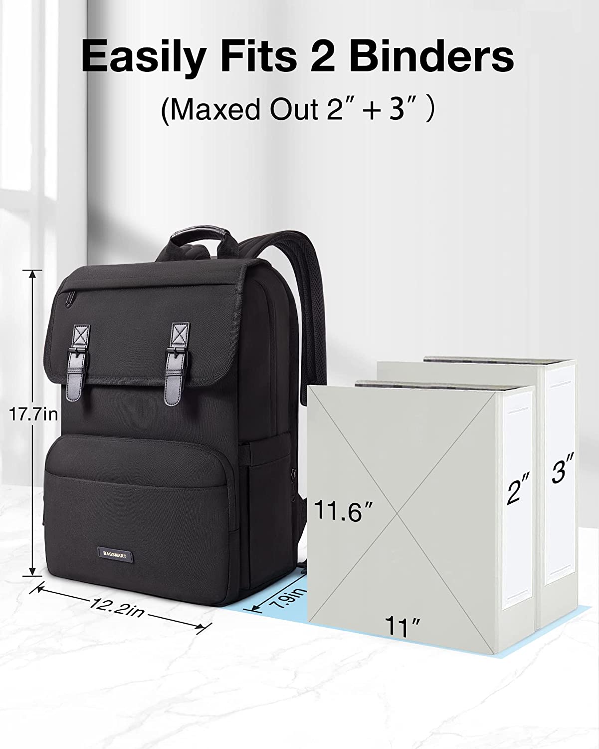 Large Capacity - The laptop backpack, 12.2"L x 7.9"W x 17.7"H, 1.76lbs, provides roomy capacity to store your clothing, A4 folders, books, 17.3'' laptop, tablet, chargers, mouse, textbooks, water bottle, umbrella, and other daily accessories. The width of the main compartment can accommodate up to a 2-inch plus a 3-inch binder. The airline-approved carry-on can be fitted overhead and under-seat, it's ideal for a weekend trip, business trip, or travel