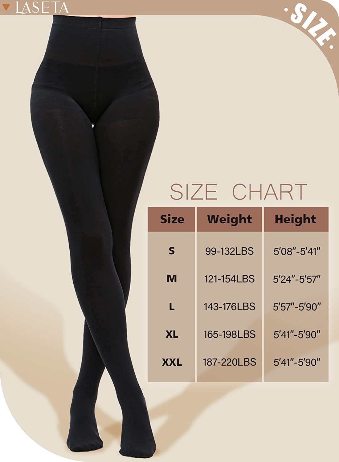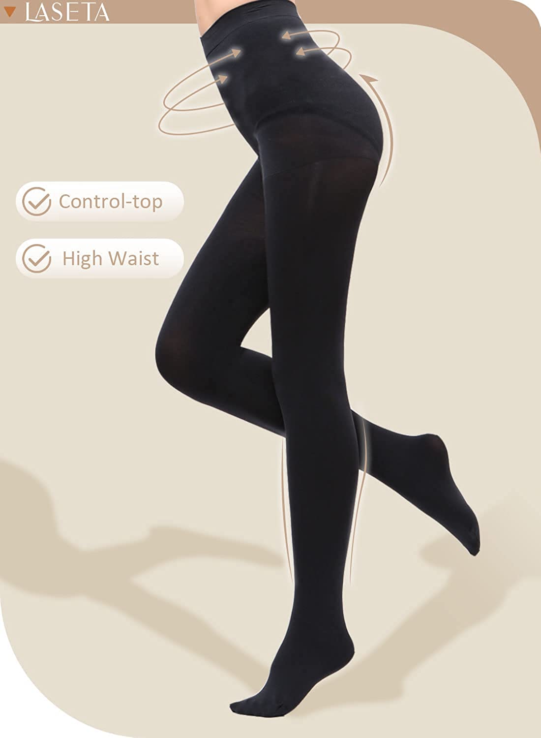 LASETA Tights for Women 120D Control Top Opaque Pantyhose for Winter 2 Pairs