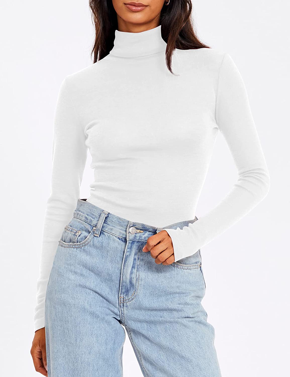 Features: Comfy long sleeve shirts, sexy mock turtleneck,tight and lightweight,light layer top,slim fit silhouette and solid color all-match.