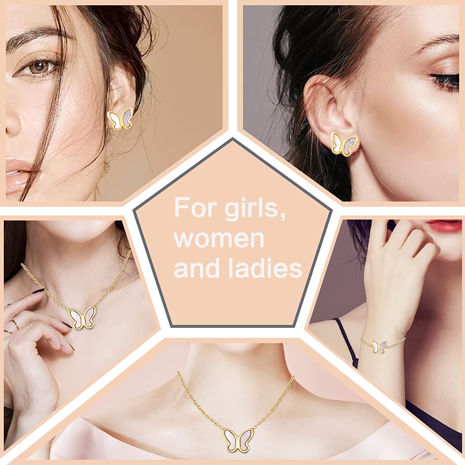 ✦ Butterfly Jewelry Set: You will have 3 different butterfly jewelry . it's including 1 pair earrings, 1 pcs necklace, 1 bracelet per one set. You can match different way according to your different clothes.Butterfly set designed of its inspiration of love and freedom,it is simple and beautiful, highlighting your nobility.