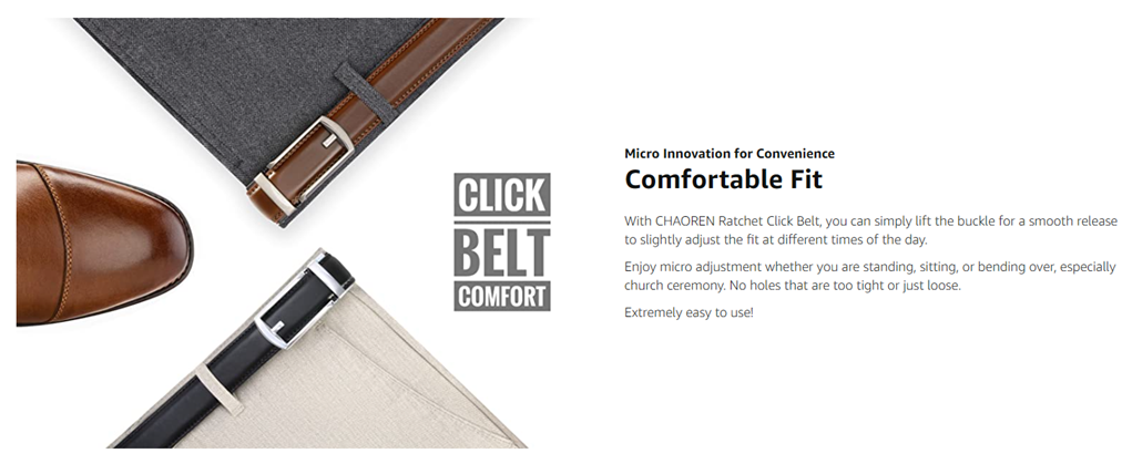 - FOR EXACT FIT - Comfort click belt allows for up to 1/4" adjustments for perfect fit everywhere. The ratchet belt features an easily removable buckle that allows you to cut the black and Cognac belt to your ideal size.