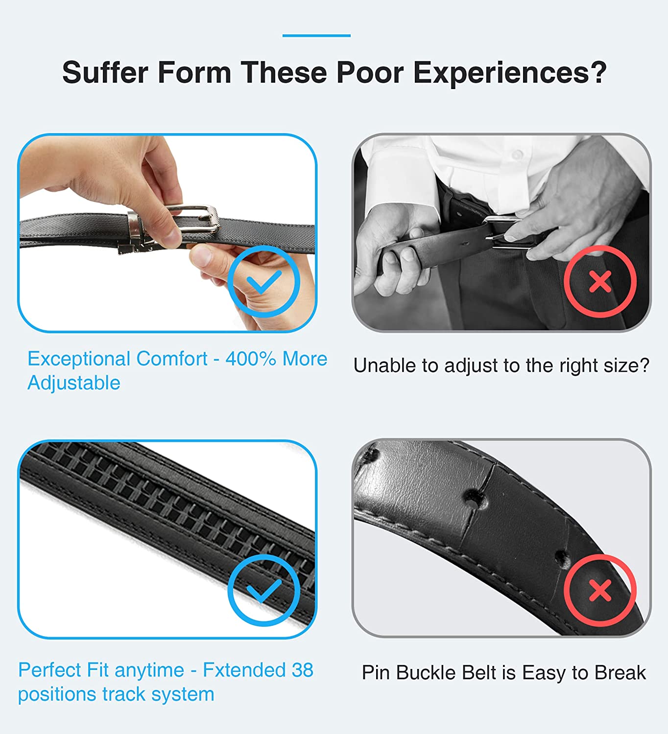 - MAXIMUM DURABILITY - Mens adjustable belt with genuine leather, presenting a high texture refined look, High-density stylish buckle is lighter and SCRATCH RESISTANT which is made to last.