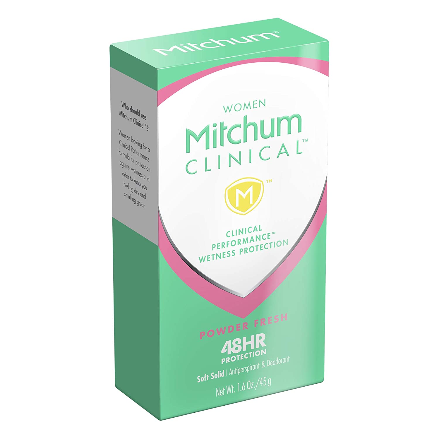 Mitchum Clinical Soft Solid Deodorant is Mitchum's most advanced Clinical Performance formula for odor and wetness protection. Maximum level of active ingredient to effectively combat wetness. This soft solid deodorant stick provides up to 48 hours of protection. Available in 3 subtle scents or unscented.