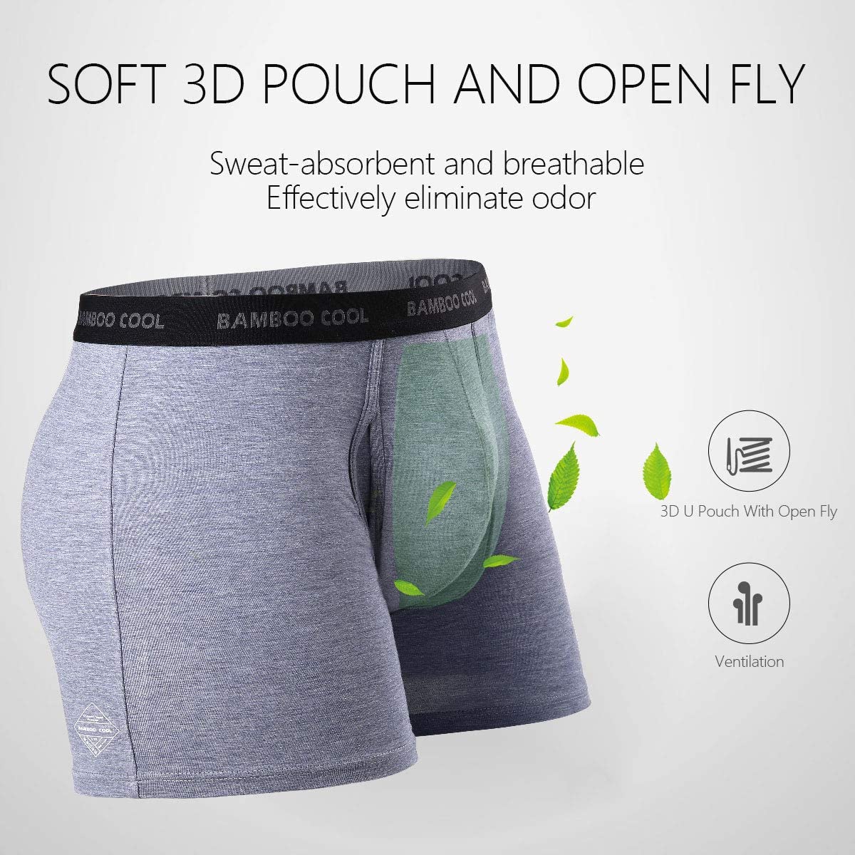 BAMBOO COOL Men’s Underwear boxer briefs Soft Comfortable Bamboo Viscose Underwear Trunks (4 Pack)
