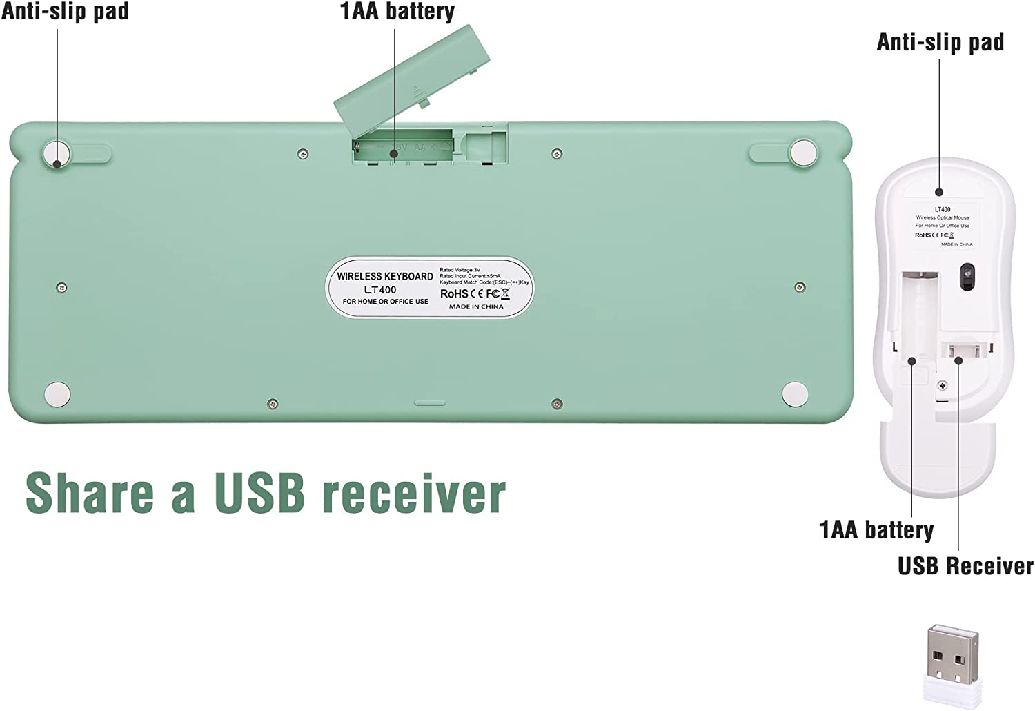 【Wireless Keyboard and Mouse Share a USB Receiver】Simplify your setup with a shared USB receiver for both keyboard and mouse. You can easily connect and use the devices without the need for multiple dongles or cables. Enjoy strong and reliable 2.4G wireless connectivity up to 10 meters away.
