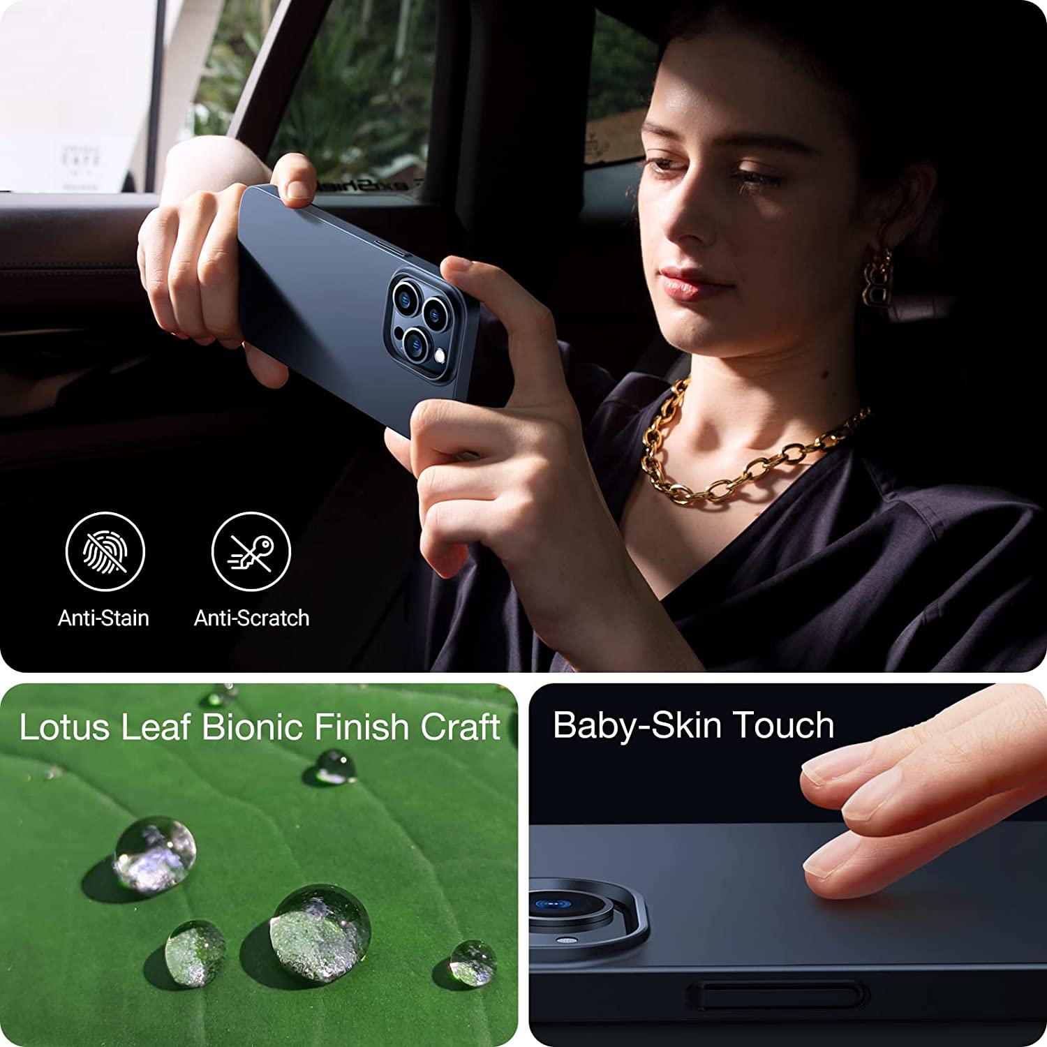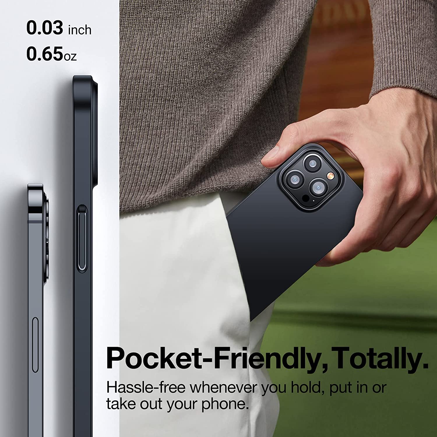 - SLEEK & EASY-CLEAN: Meticulously plated with 4 layers of nano-coatings, the iPhone 14 Pro slim case offers a baby-skin and comfortable touch. Easy to clean, stay away from sticking clothing fibers, pet hair, dust, or stains! Say goodbye to the embarrassing moment when your phone got stuck in your pocket or wallet.