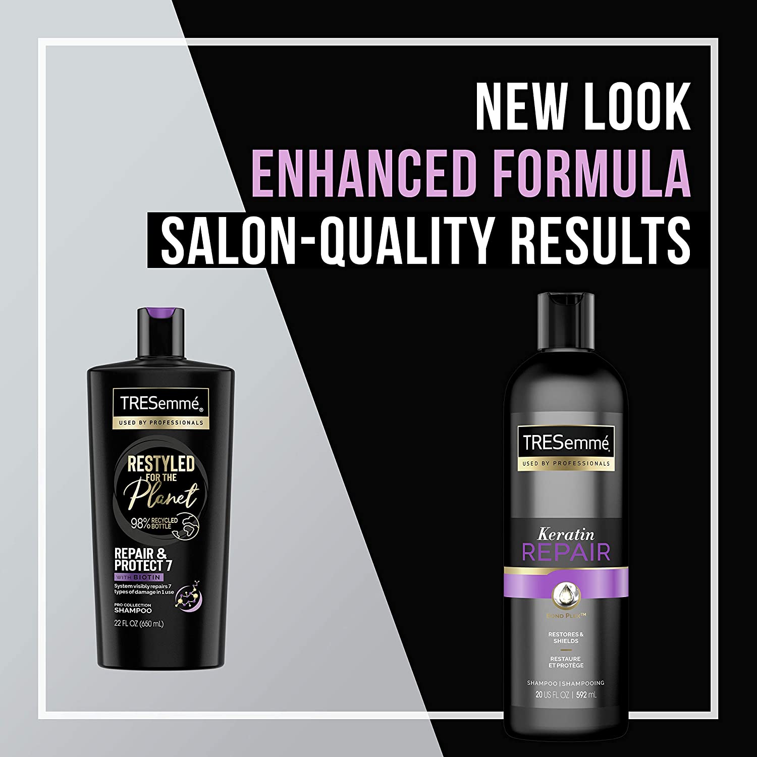 • TRESemmé Pro Keratin Repair Shampoo formulated with Bond Plex Technology targets dry hair to visibly repair damaged areas and penetrates hair fiber to make it more resilient to future damage