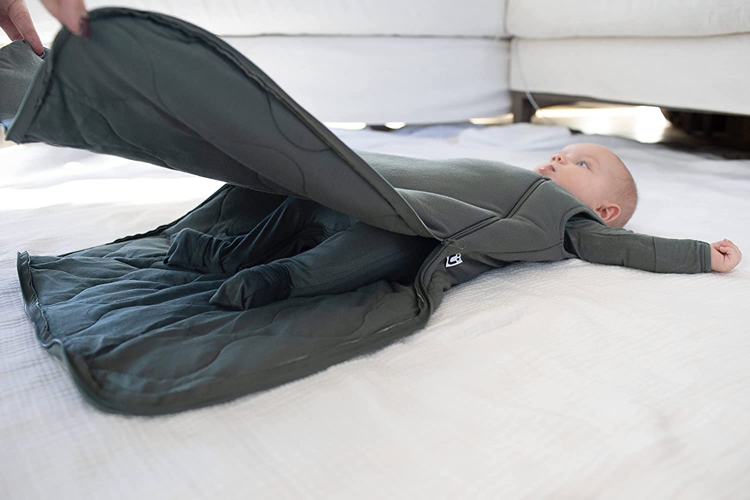 Bedtime Made Better: Our magically fluffy & evenly weighted Down Alternative wearable blanket in cloud-soft bamboo rayon mimics the warmth and the loft of a down comforter. Designed wider + longer to keep baby comfortable in any position - folded legs, frog legs, or hip-healthy kicking!