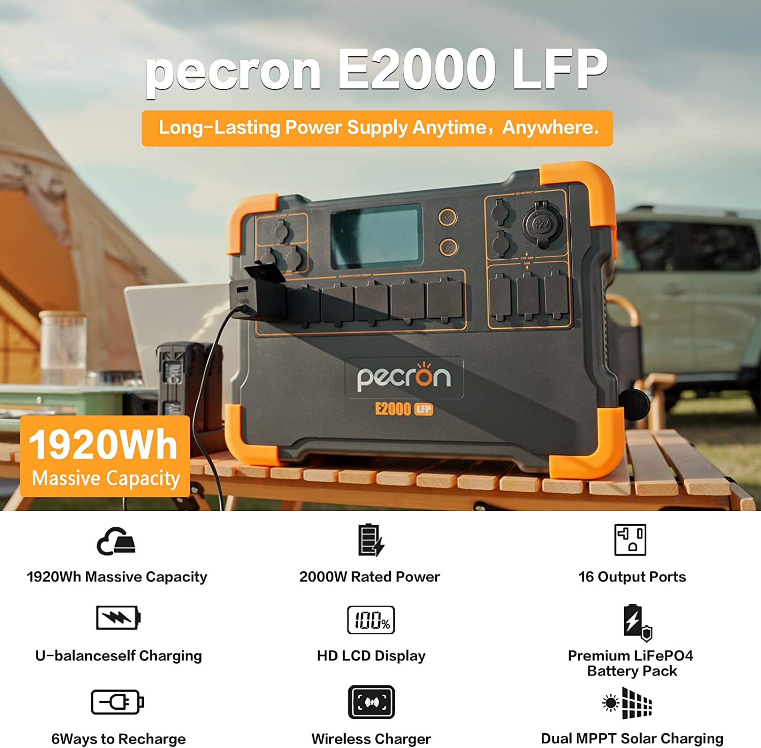 pecron Portable Power Station E2000LFP,1920Wh LiFePO4 Battery Backup Expandable to 8064Wh 6X2000W AC Outlets 1200W Max Solar Input Backup Power for Outdoors Camping Fishing Emergency