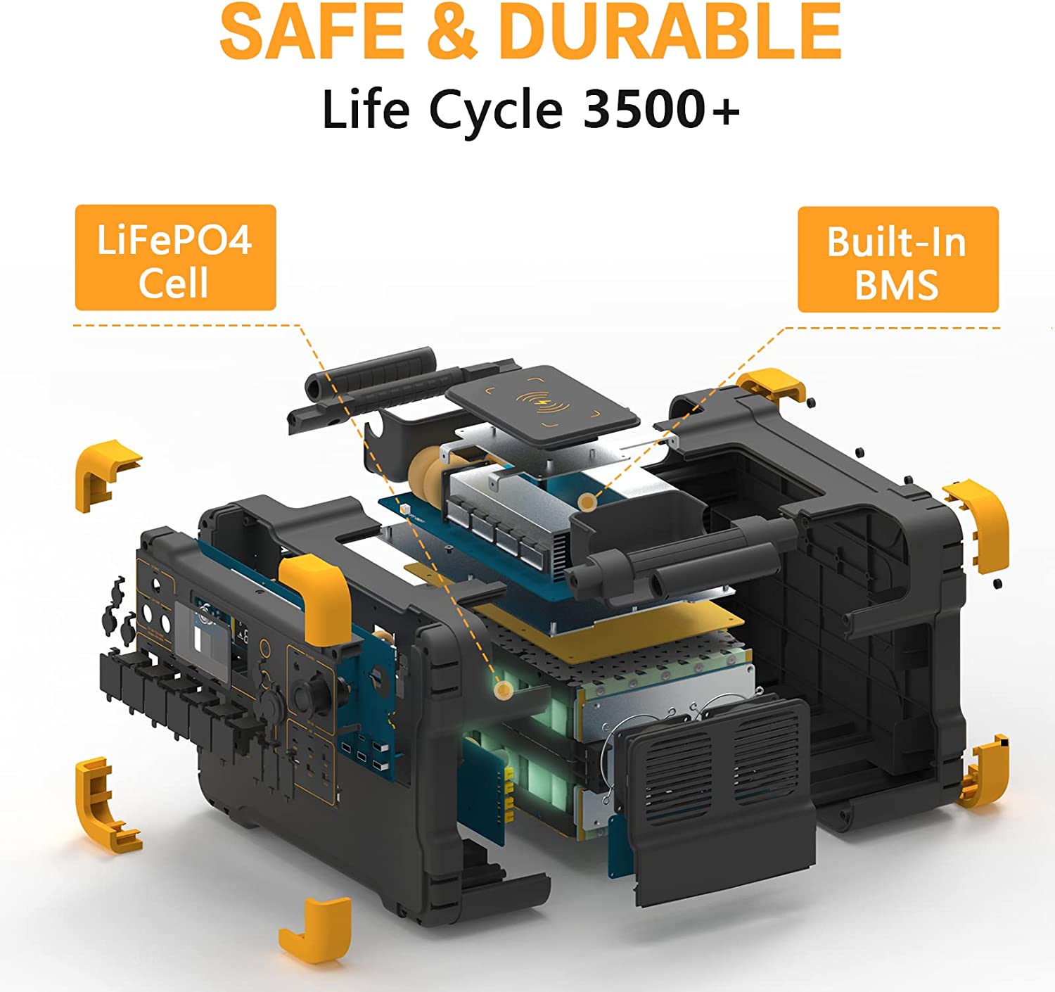 • Safety &Durable: The ultra-safe LiFePO4 battery with Build-in BMS assure the self-protection of short circuit, overload, and overheat. 110V Pure-sine wave inverter make sure there is no damage to your sensitive electronic devices.