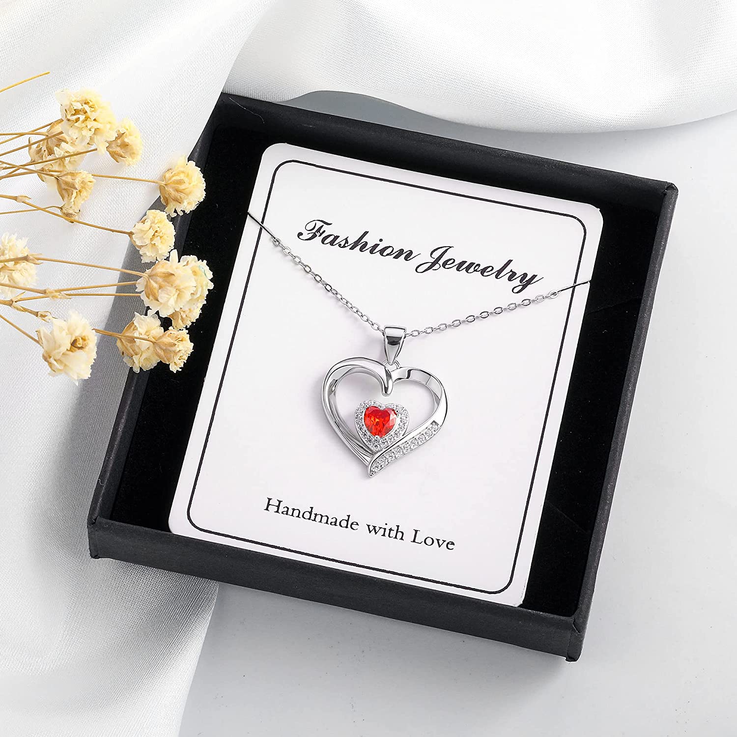 S925 STERLING SILVER Necklace: Heart pendant necklace made of S925 sterling silver, with birthstone is an unique and heartfelt fashionable jewelry beautifully packaged and ready for gift giving.