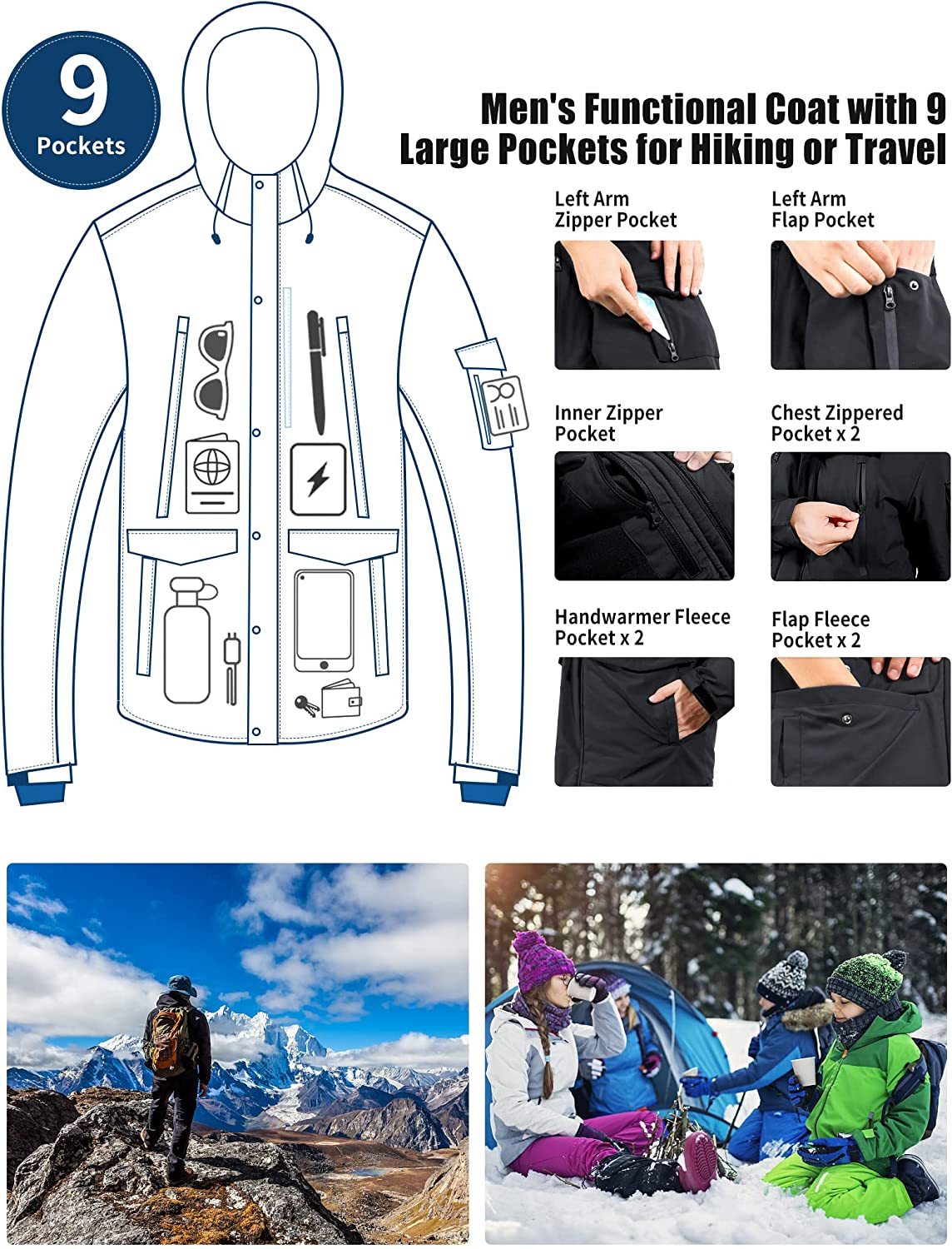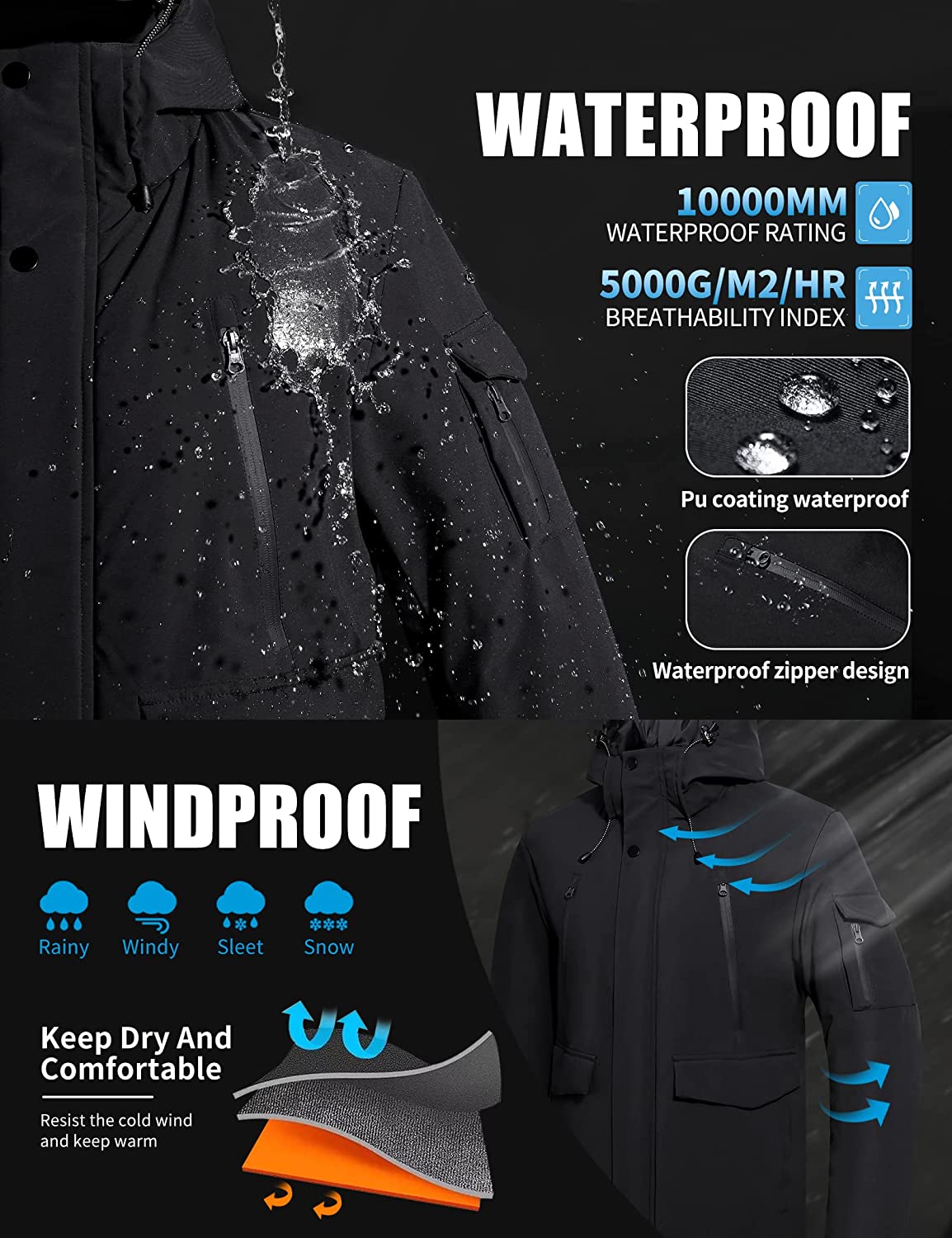 Waterproof & Windproof: Winter coats for men is made of waterproof coated fabric, pocket zippers are also waterproof, ski, you don't worry about getting wet in the rain. The extreme cold weather jacket and hood drawstring turtleneck provides all-around wind protection, keeping you warm and helping you fto ight bad rainy or misty weather.