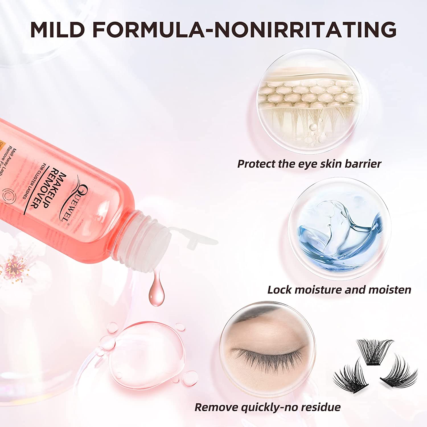 【Mild Formula】This eyelash cluster remover formula is very gentle and safe, free of alcohol, all the ingredients are safe for your eyes and skin, no damage to your real lashes. Formulated with pure botanical extracts, it can nourish the eye area while gently cleansing.