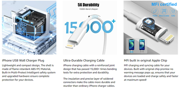 | Special Feature | Tangle Free, Heat Resistant, 6FT charging cable |
