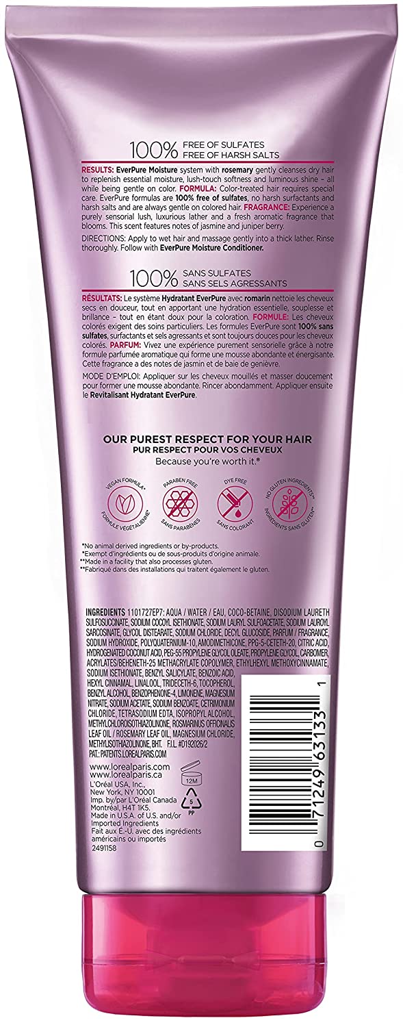 - EverPure Moisture Shampoo with rosemary deeply replenishes dry hair with moisture, softness and luminous shine; Delivers the special care color-treated hair needs, to protect hair color week after week