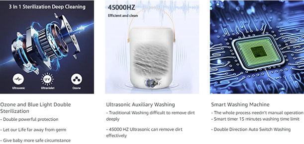 • 【Ozone & Blue light】- This small washing machines for apartments own Ozone and Blue light double deep washing protection. Double washing protection brought users cleaner socks and more healthy life. Let bacterium far away from us. These are especially important for baby.