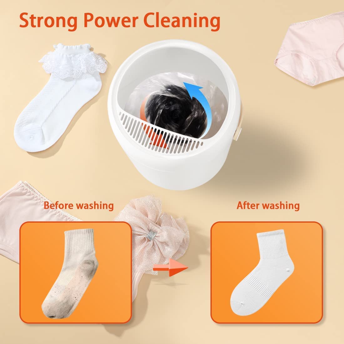 • 【Ultrasonic Auxiliary Washing】- This mini portable washing machine utilize ultrasonic to make dirt drop from sock, especially dirt in crevice which is difficult to be removed. We strongly recommend to add laundry detergent into water, then put soaks in and soak for 10 minutes before turn on washing machine. That will make better effect on washing.
