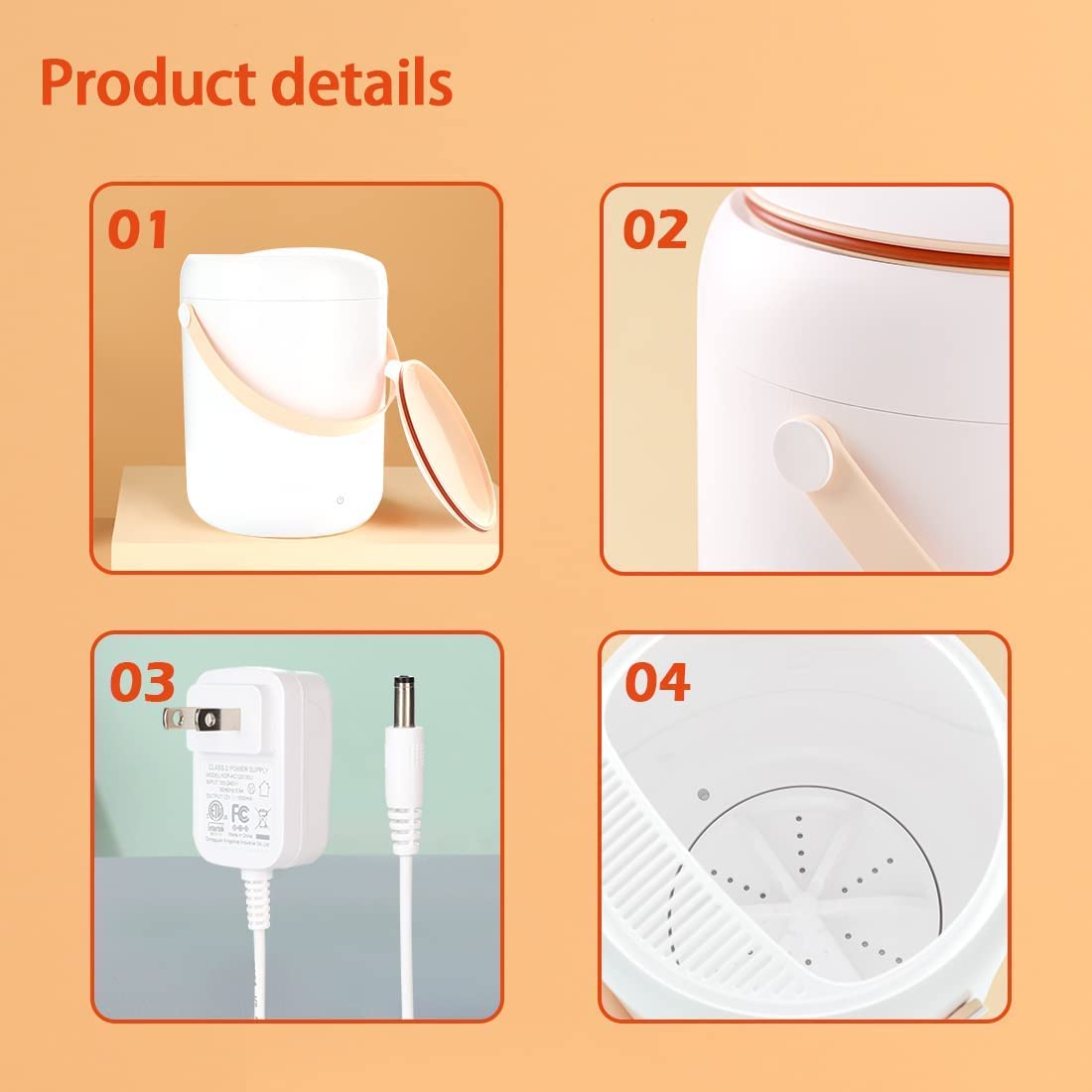 • 【Convenient to use】- This portable washing machine adopt one button control design. Users just put finger on button for 2 seconds, the washer machine will turn on right now. Filter on the top of washing machine is helpful for users to pour dirty water after using. Handle is convenient for users to change water as well.In addition, this washing machine enable users to cover it for preventing water overflowing. Mini Shape do not mean small capacity. It can wash 3-5 socks at the same times.