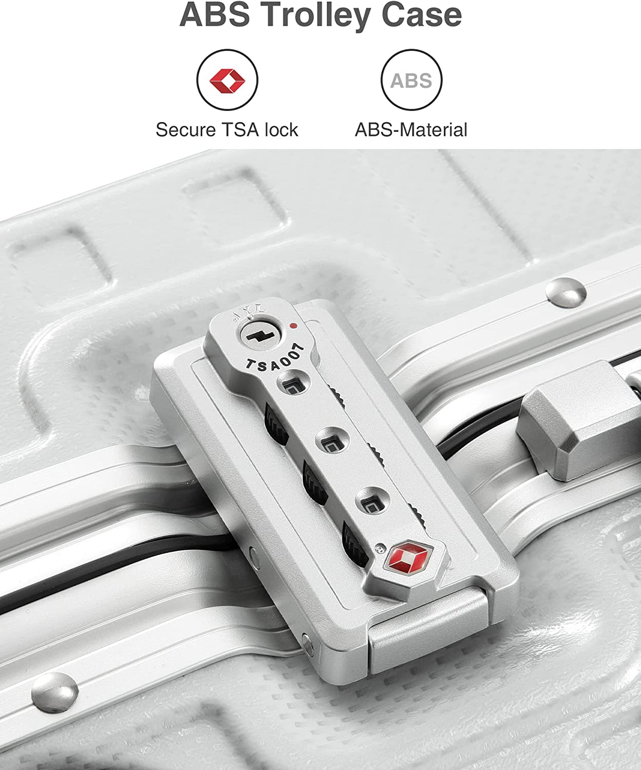 DUAL TSA LOCKS - The latches are TSA-approved locks, made of ABS with powerful wear-resistant and stronger toughness. Carry on suitcase can be opened with a single press!