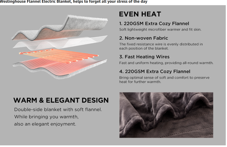 Westinghouse is built upon a tradition of dependability and innovation. Today, we strive to make everyday life a little better by offering a wide range of quality products and services you can trust.Our electric blanket brings you warmth while giving you an enjoyment.