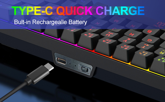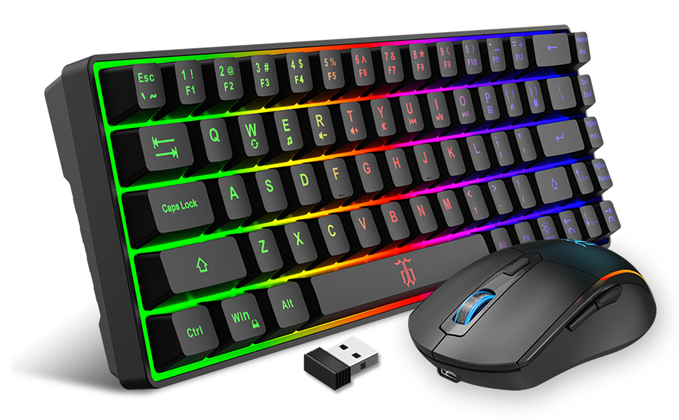 - 【Rechargeable & Long Battery Life】This rechargeable 60 keyboard is equipped with 2000 mAh battery,and the mouse is equipped with a 500 mAh battery. It only takes 2 hours to charge the keyboard by 5V/1A , and it can be used continuously for more than 40 hours with light. Support energy-saving sleep mode.
