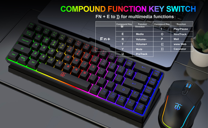 - 【Colorful Light@Ergonomic Design】The mini wireless gaming keyboard has built-in three groups of rainbow backlight effects. The unique structural design and built-in steel plates, etc., make the small keyboard have a very similar black switch mechanical feel. The cute pocket-sized mouse contains seven brilliant colors.The wireless mouse buttons also make a crisp sound of game atmosphere.Try,you will feel so good in your hand.