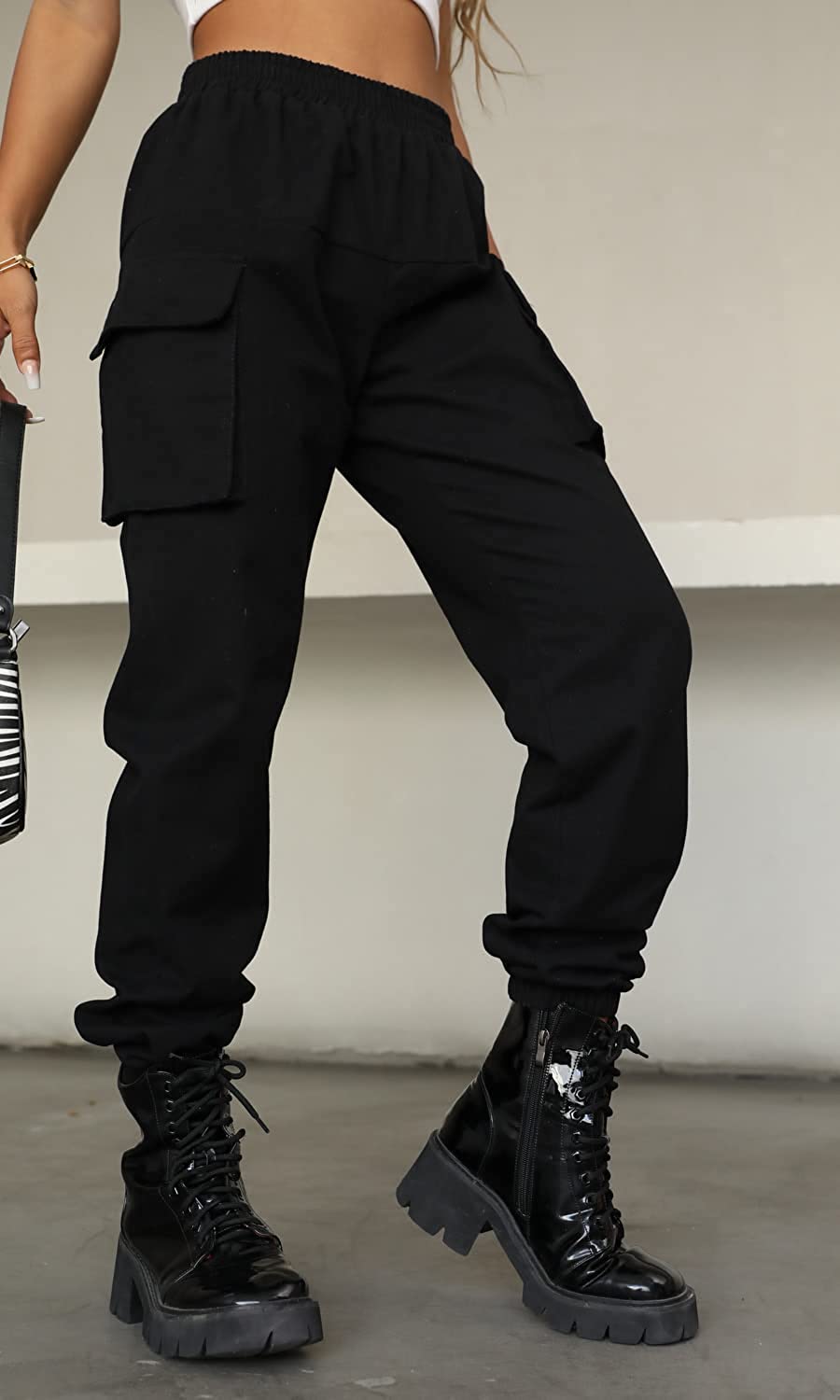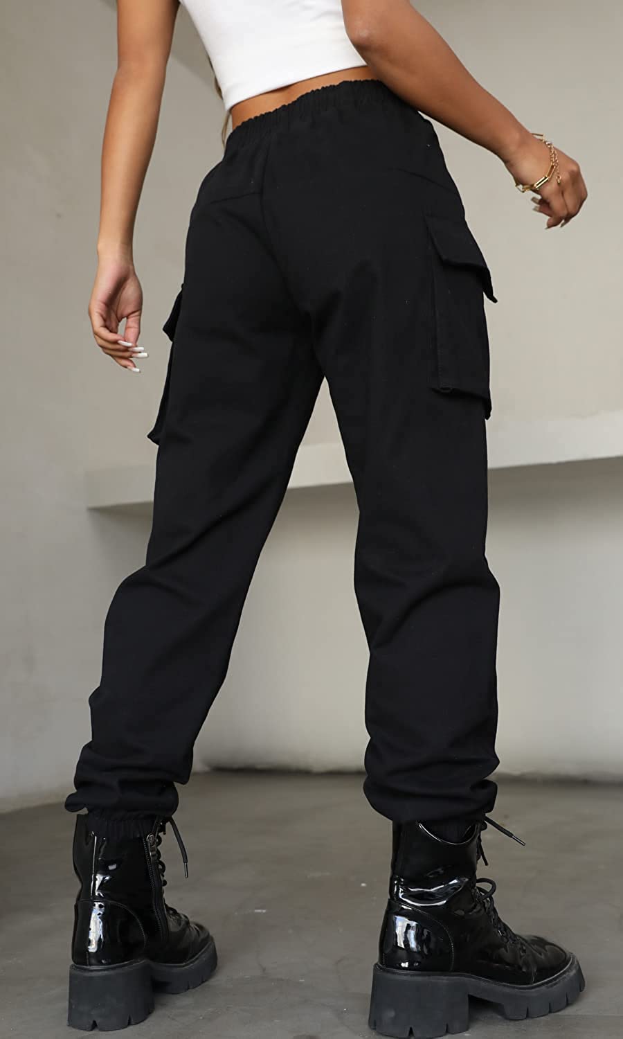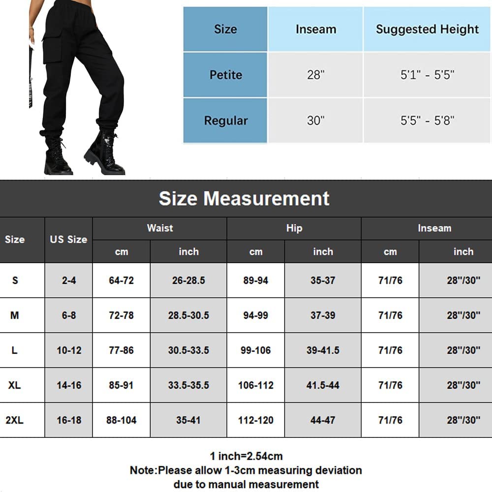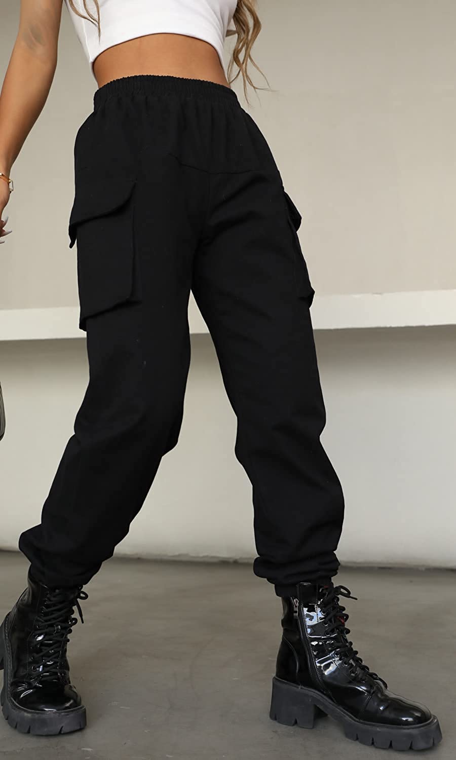 VANGULL Women's High Waisted Jogger Pants Casual Flap Pocket Solid Outdoor Cargo Pants Black