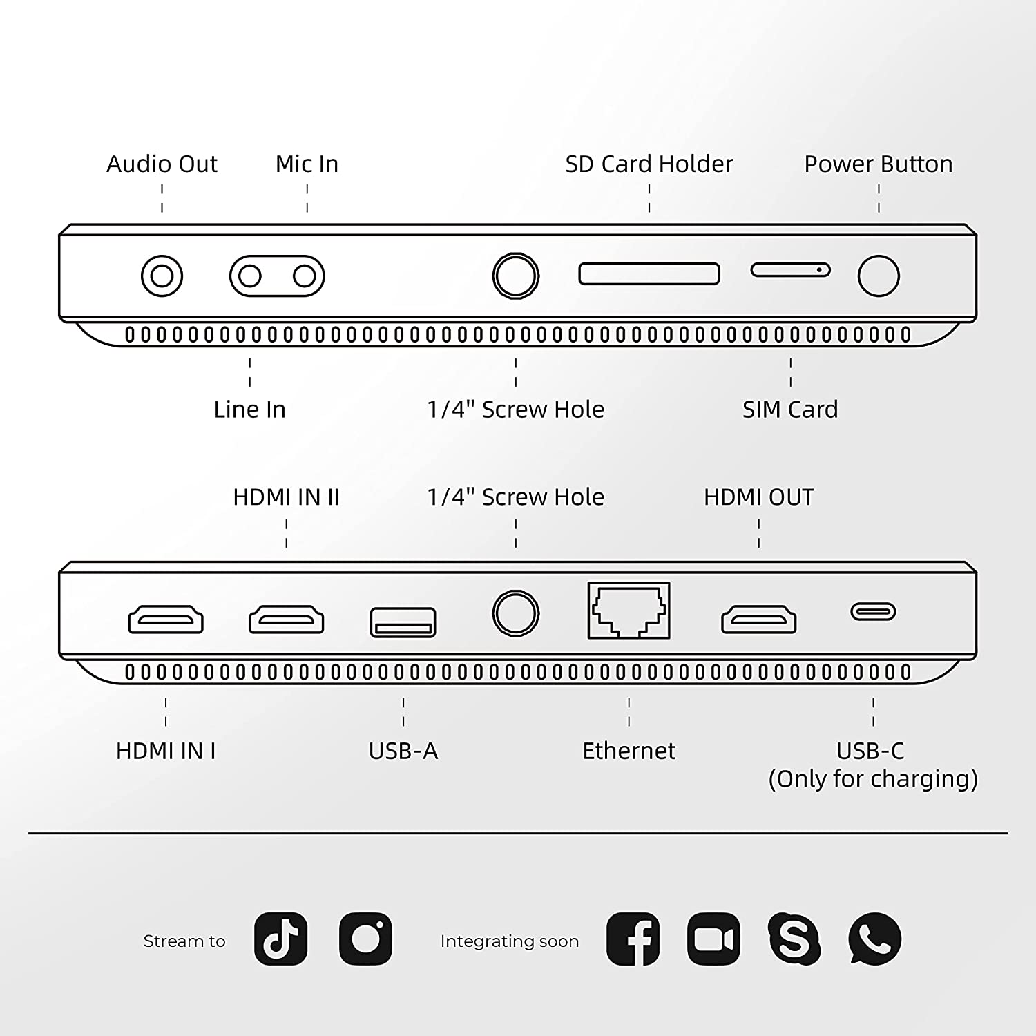 • Wildly Advanced, Yet Brilliantly Simple: Instream has 2 HDMI inputs, 1 USB input, plus local SD card video sources and PDF source from SD card, 1 Mic in, 1 Line in, 1 HDMI out, 1 Audio out. It can live stream and switch with multiple sources. The 8-inch touch screen design is still super-easy to operate. It’s brighter with 600 nits and more responsive! With a much increased built-in 10,000mAh battery, it has over 3-hour battery life.