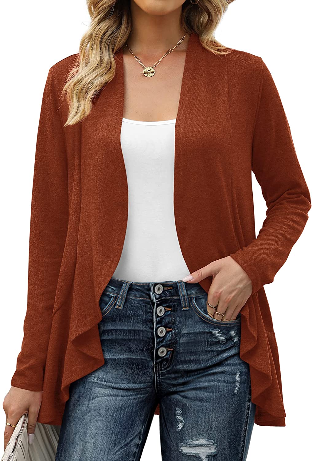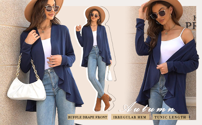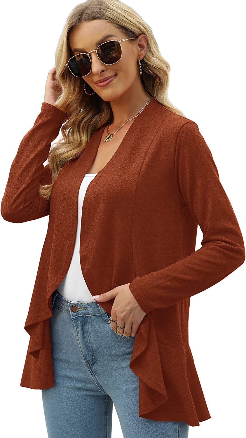 ✦Feminine Design: Long Sleeve open front cardigan for women, ruffled drapes cardigan sweaters with irregular hem, light fall jackets. It's soft and not too heavy, an essential for daily all seasons.