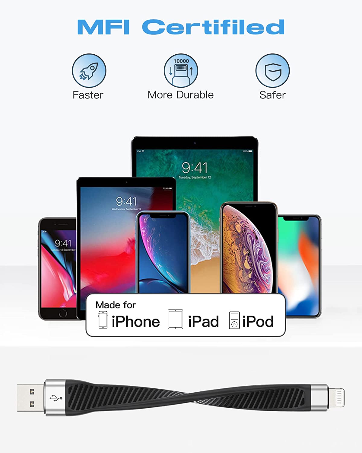 【Portable Pocket Design】: 5.5 inch short iPhone wire, perfect for your battery pack, charging station and power bank. An ideal charging cable when traveling or on business trip