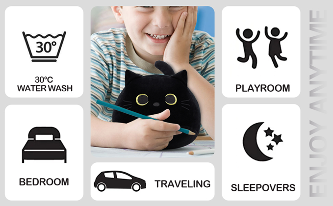 High-quality materials: iBccly Cat Stuffed Animal is made of high-quality soft and comfortable plush fabric, filled with pp cotton.Cat Plush Doll Toy is safe and durable, soft and skin-friendly, giving you a beautiful and comfortable skin touch. Every cute doll pillow has undergone many quality inspections. This is a quality-guaranteed black cat doll pillow.
