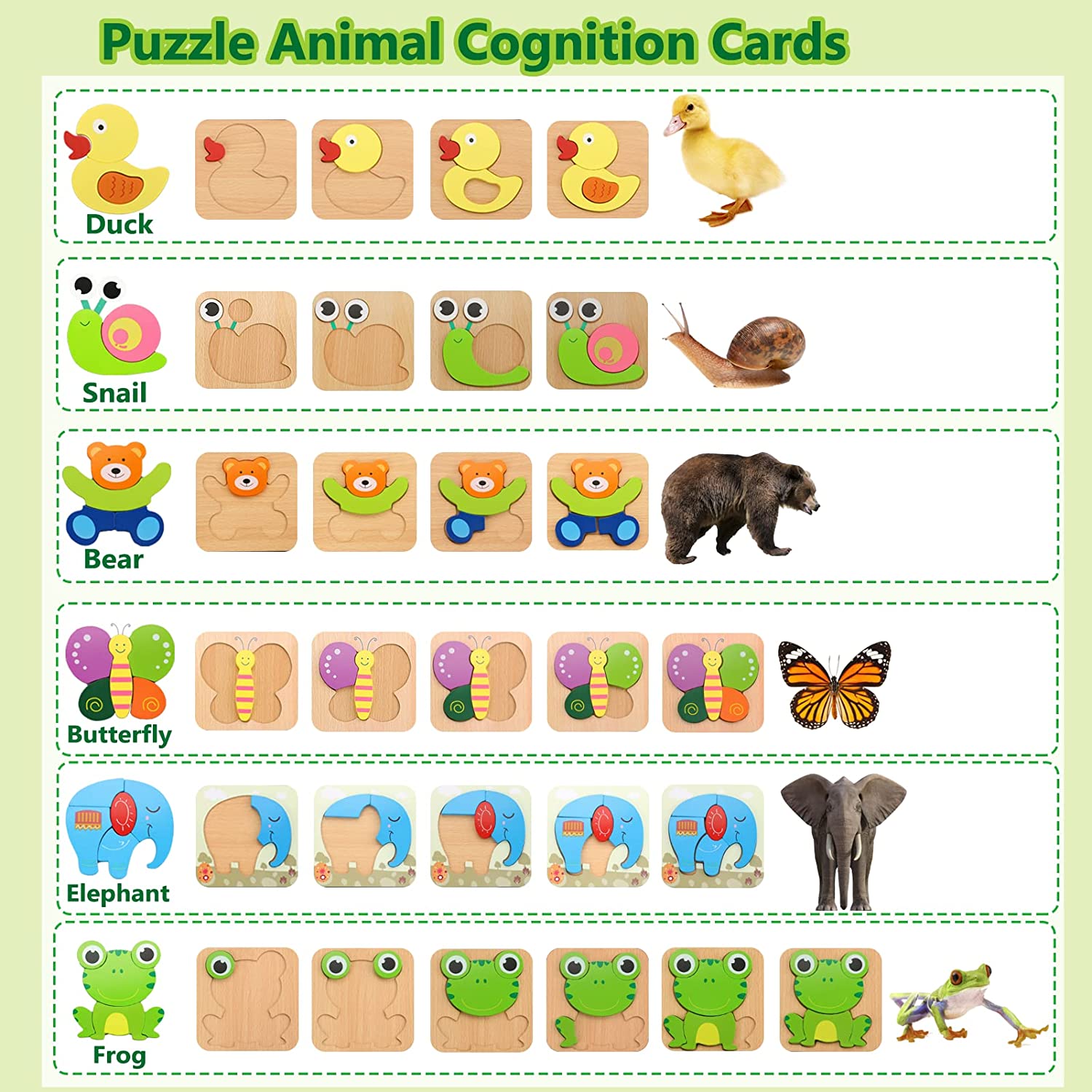 Montessori Toys for 1+ Year Old,Toddler Toys Age 1 2 3 Year Old Boy Girl, Wooden Puzzles for Toddlers 1-3,Learning Educational STEM Sensory Toys,6 Animal Jigsaw Puzzles Games Baby Toys Boy Girl Gifts