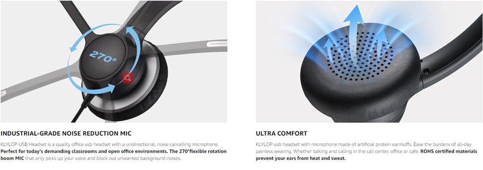 - ✅【??????????-????? ????? ????????? ???】KLYLOP USB headset with mic tested in the lab, especially used for software calls on mobile phones and computers. A built-in unidirectional noise-reduction microphone significantly enhances the audio experience. 270°flexible rotation boom MIC brings optimum voice capture. Wear it on your right or left side, it's up to you. ?KIND TIPS: The closer the Mic is to the mouth, the better the call will be.