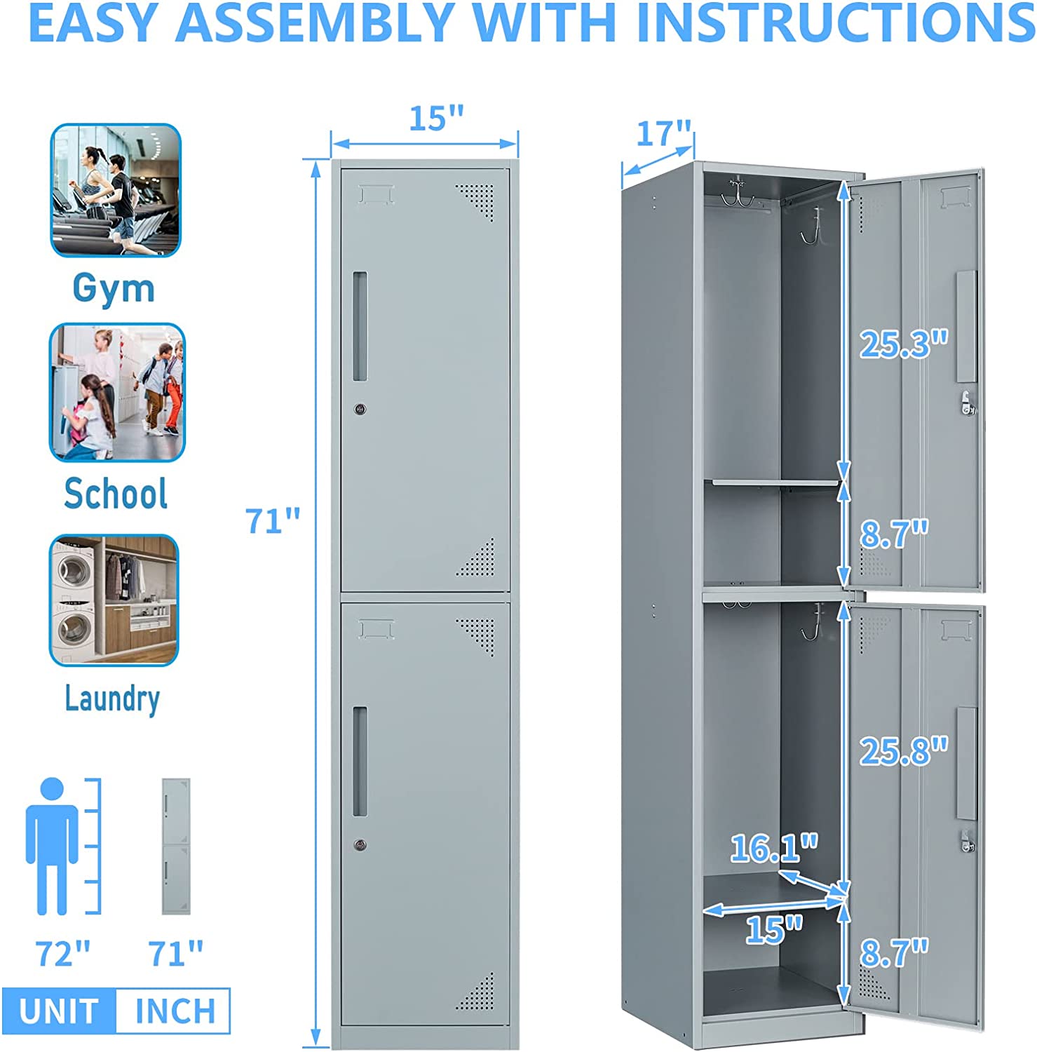 【Big capacity】Letaya metal lockers H71" x W15" x D17",2 door with lockable and 25.3 inches hight can hang clothes, hats, bags, etc.,17in deep can provide all the space needed to secure belongings for storage.