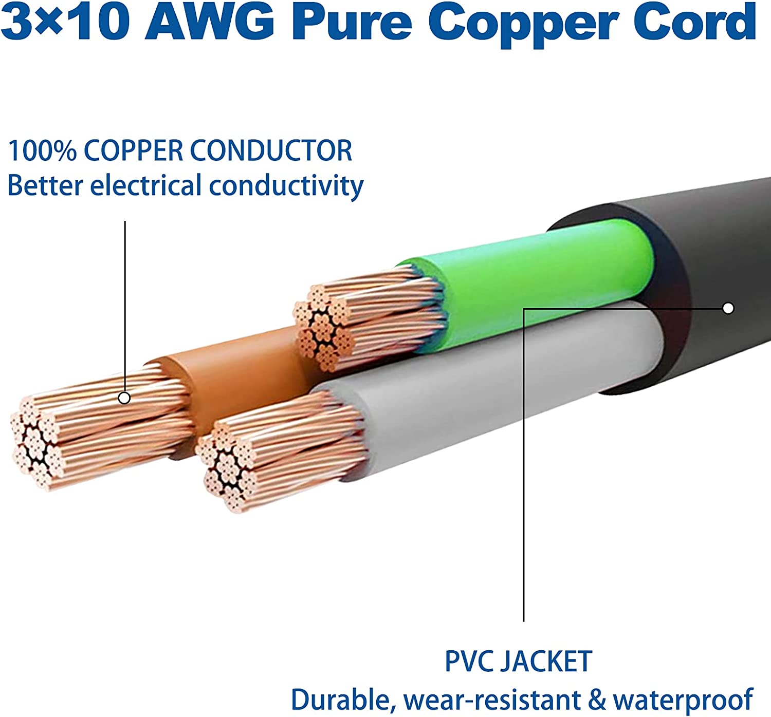 - ⚡【SAFE AND DURABLE CONSTRUCTION】The RV Power Extension cord is constructed with 100% copper wiring and weather resistant 10/3 Gauge STW jacket for Heavy duty, heat resistant PVC sheath that serves as protection from outdoor elements, wear and tear