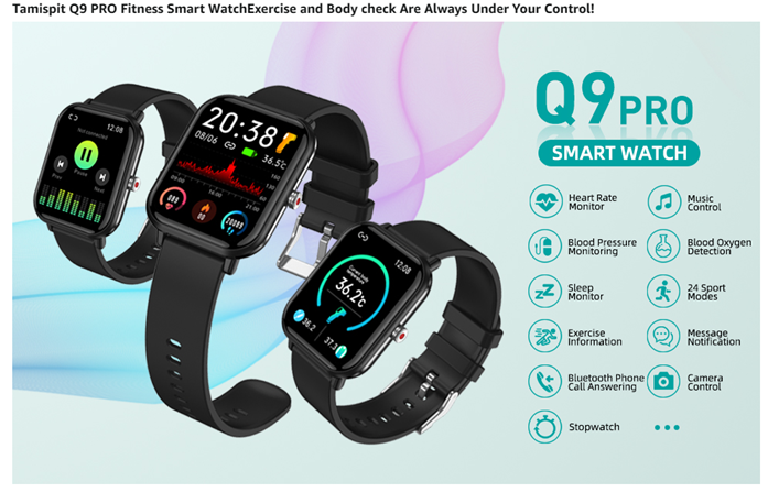 - 【Multi-Function Smart Watch】: The Q9 PRO smartwatch fitness tracker can provide all-around body data tracking, allowing you to accurately track 24-hour bady data and stress levels. Automatically monitor your sleep (Deep sleep, Light sleep, Awake time)to tell you how long you sleep during the night. sleep, Light sleep, Awake time)to tell you how long you sleep during the night.