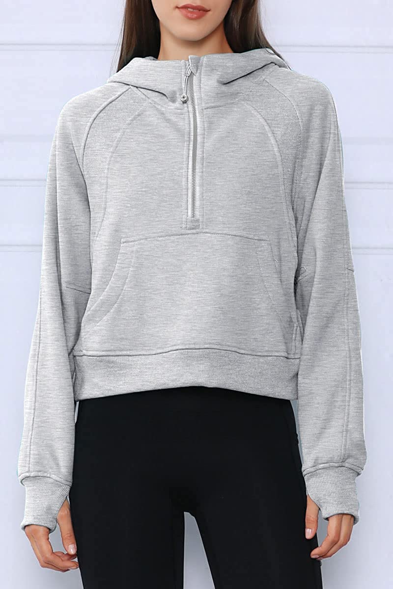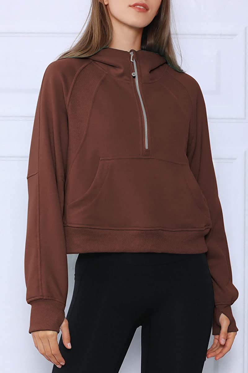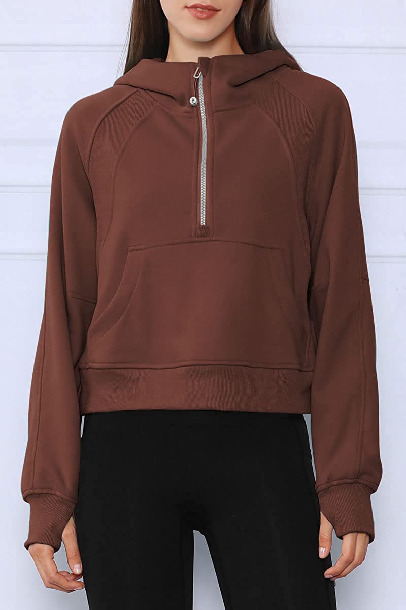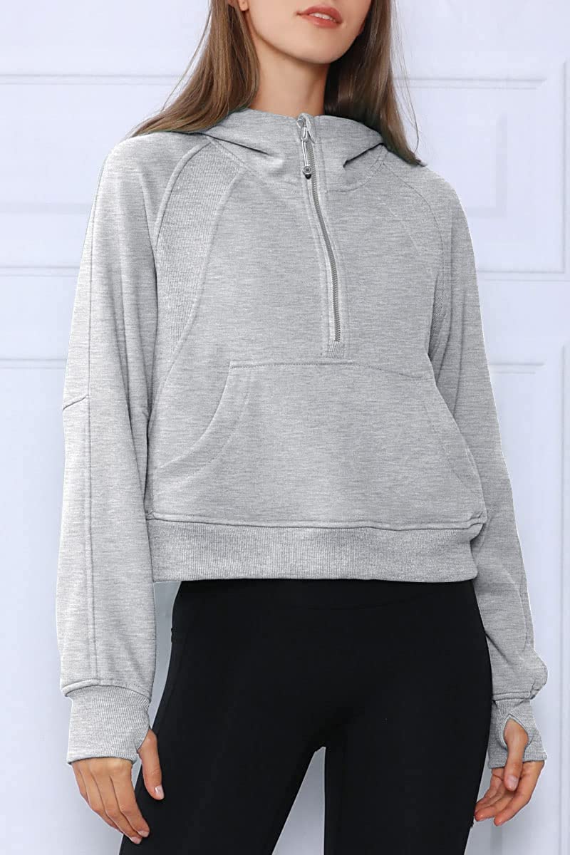★Design: Athletic workout hoodies,women pullover sweatshirt,drop shoulder collar, long sleeve with thumb holes, half zip collar, solid color, cropped length,fleece lined, relaxed fit,crop top, winter outfits for women, fashion and casual style, it's thick and really soft inside, standard size, a sweatshirt that goes with everything.