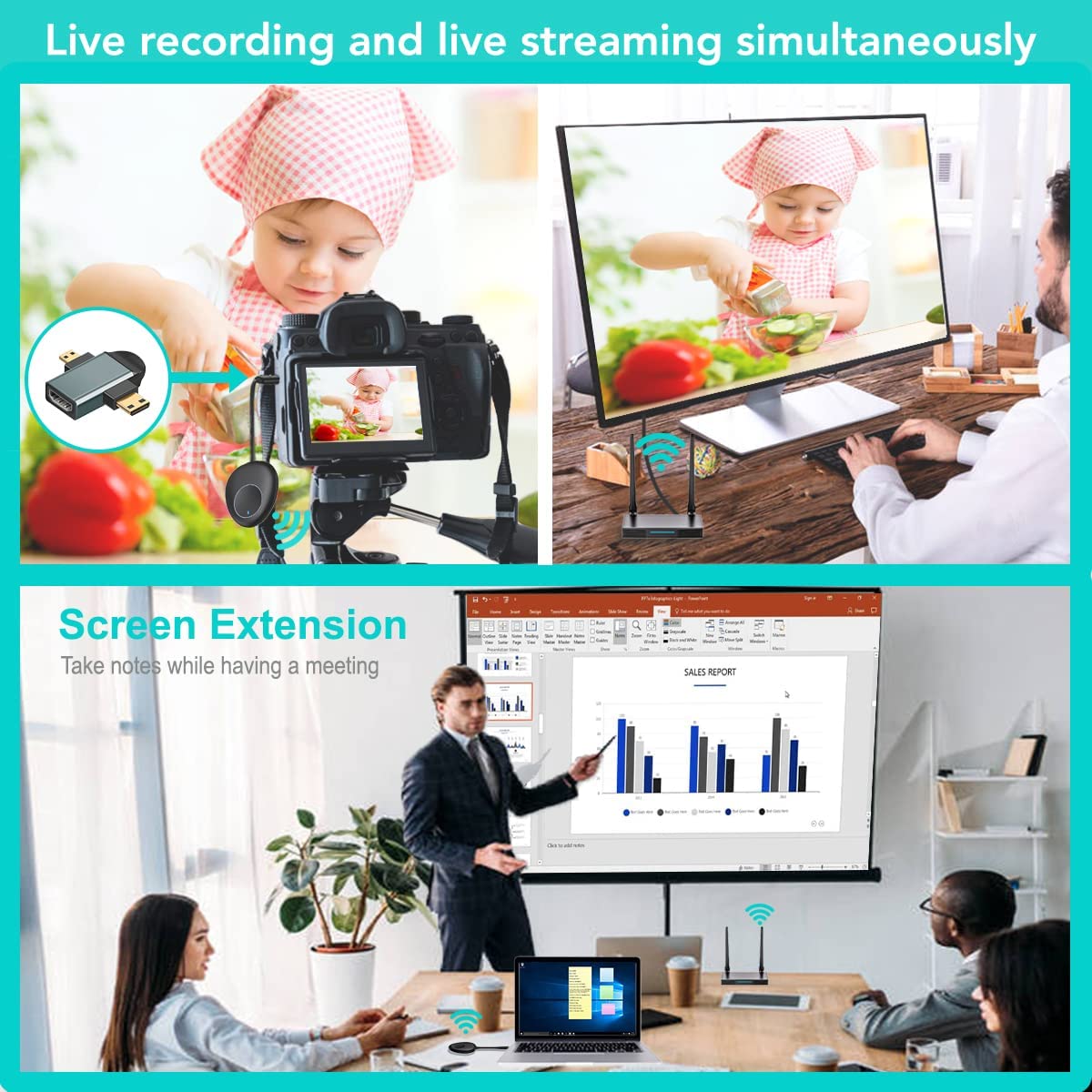 ?PLUG&PLAY⚽165ft: The wireless transmitter connects to the HDMI/VGA output of the device, then the wireless receiver connects to the HDMI/VGA input of the monitor, plugs in the power, auto sync start, no need for Bluetooth or code scanning. Dual external antennas transmit audio/video signals up to 165ft, suitable for remote control.