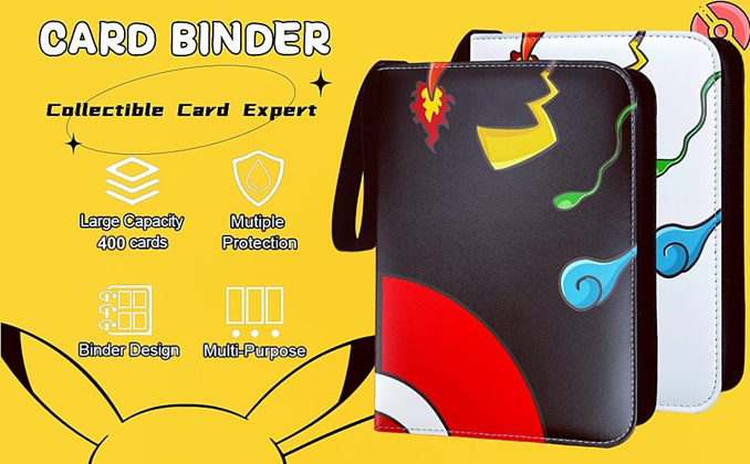 Trading Card Binder, Card Holder 4 Pocket 50 Removable Sleeves 400 Cards Zipper Binder, Card Collection Binder Album Folder, Toy Gifts for Boys Girls