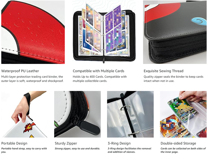 • 【Safe and Portable】The multi-layer protection trading card is made of PU leather and eco-friendly EVA foam, the outer layer is soft and waterproof, shock-proof and moisture-proof. Closed zipper keeps inner pages or cards from falling out. Portable hand strap, easy to carry with you.