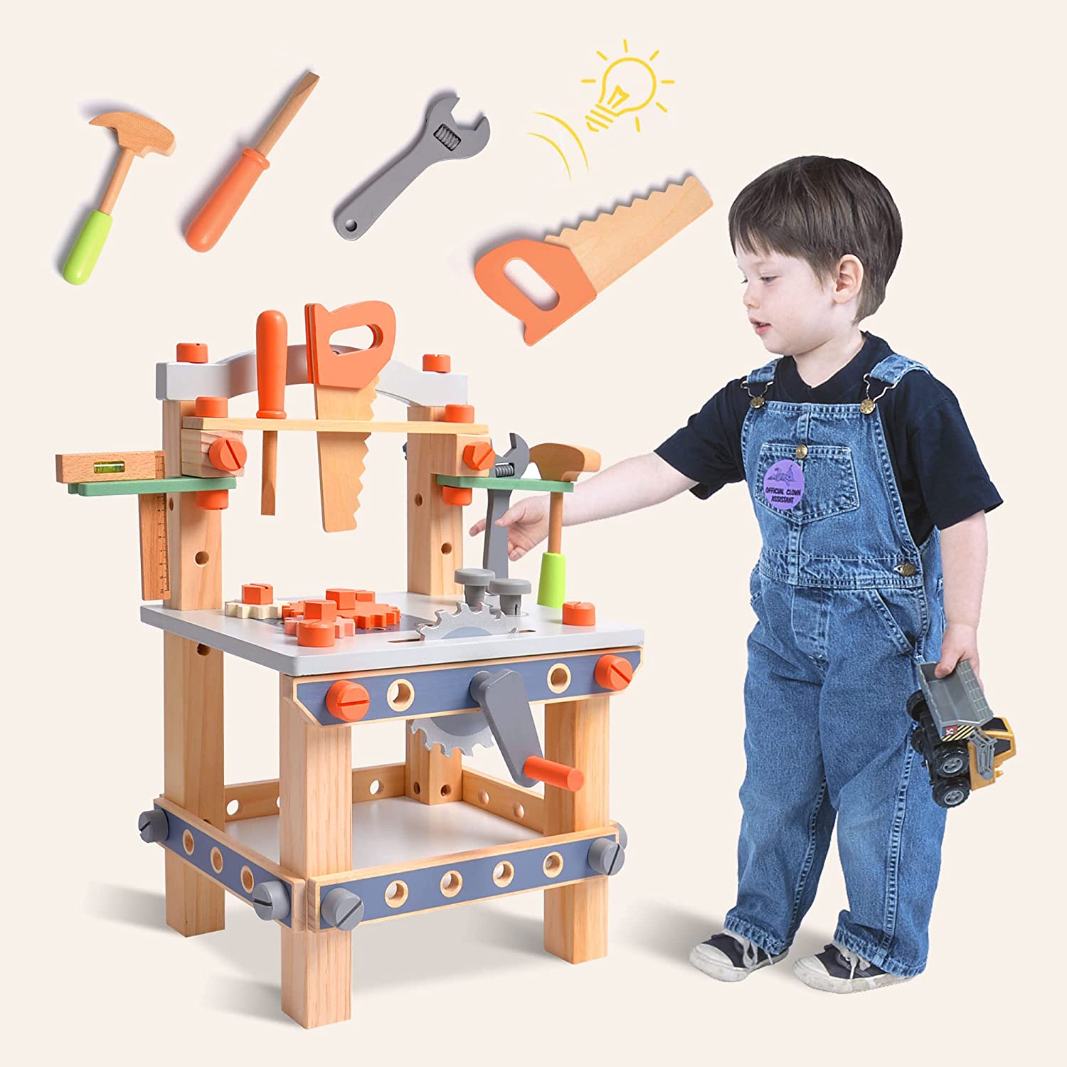 ⭐[Material and Quality]- Made of solid wood. Grinding irregular edges and corners, ensure no edges and corners and burrs, protect children's skin, let children play at ease, adults are also more at ease. kids tool bench.