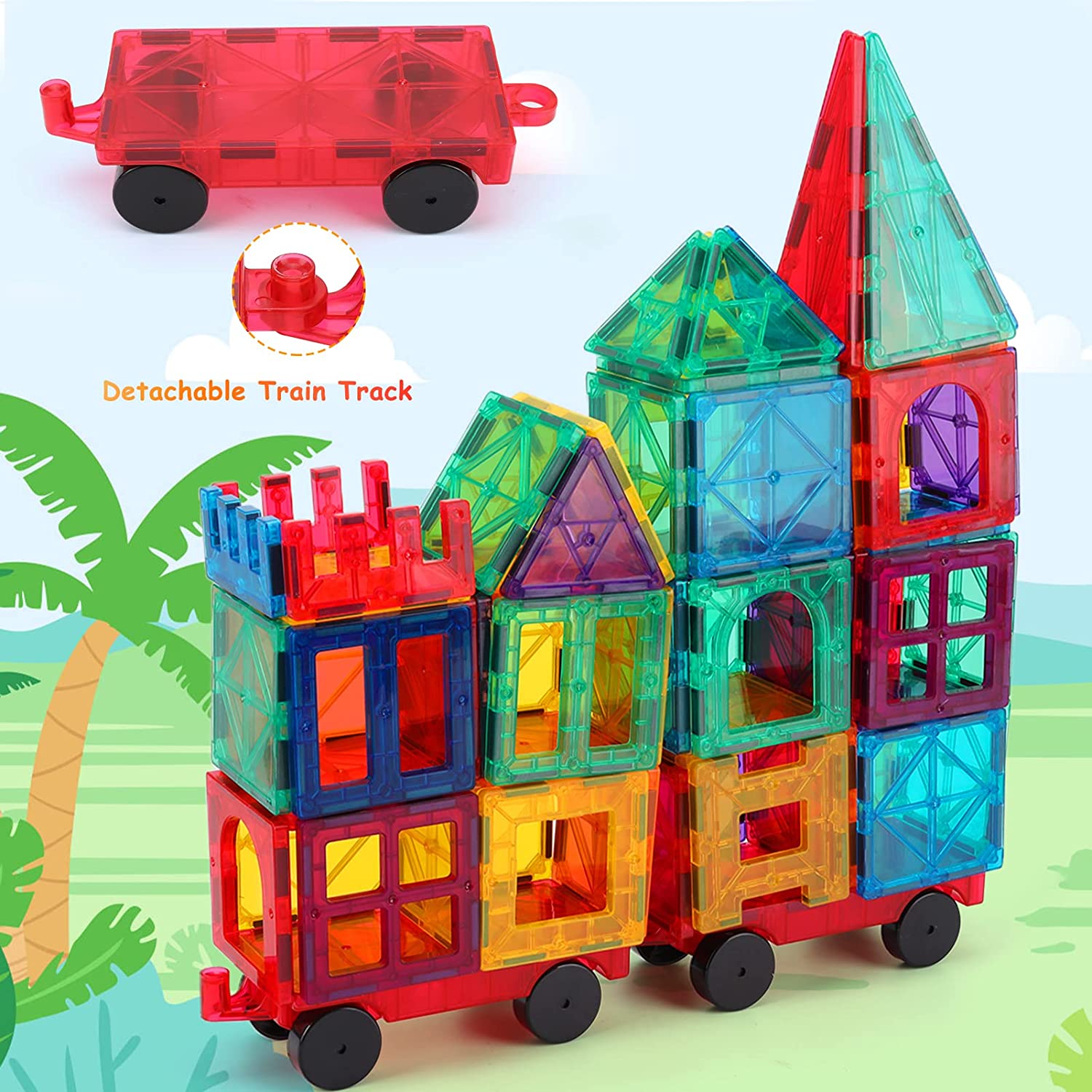 Ideal Gifts for Kids: Magnetic tile set is easy to clean and is a gift for kids' birthday, Halloween, Christmas. Bring joy and fun to your kids and let them grow up happily playing with tile magnets.